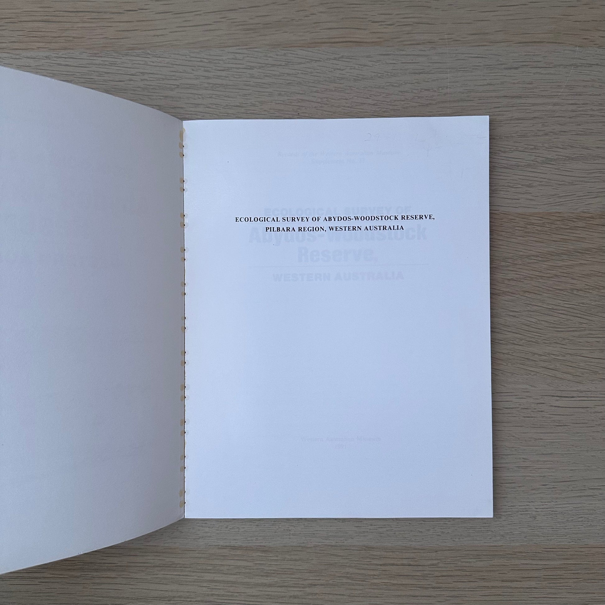 A detailed ecological study documenting the flora, fauna, and natural environment of the Abydos-Woodstock Reserve in Western Australia. This survey provides valuable insights into the biodiversity and conservation significance of the region, making it an important reference for researchers, students, and those with an interest in ecology and environmental science.