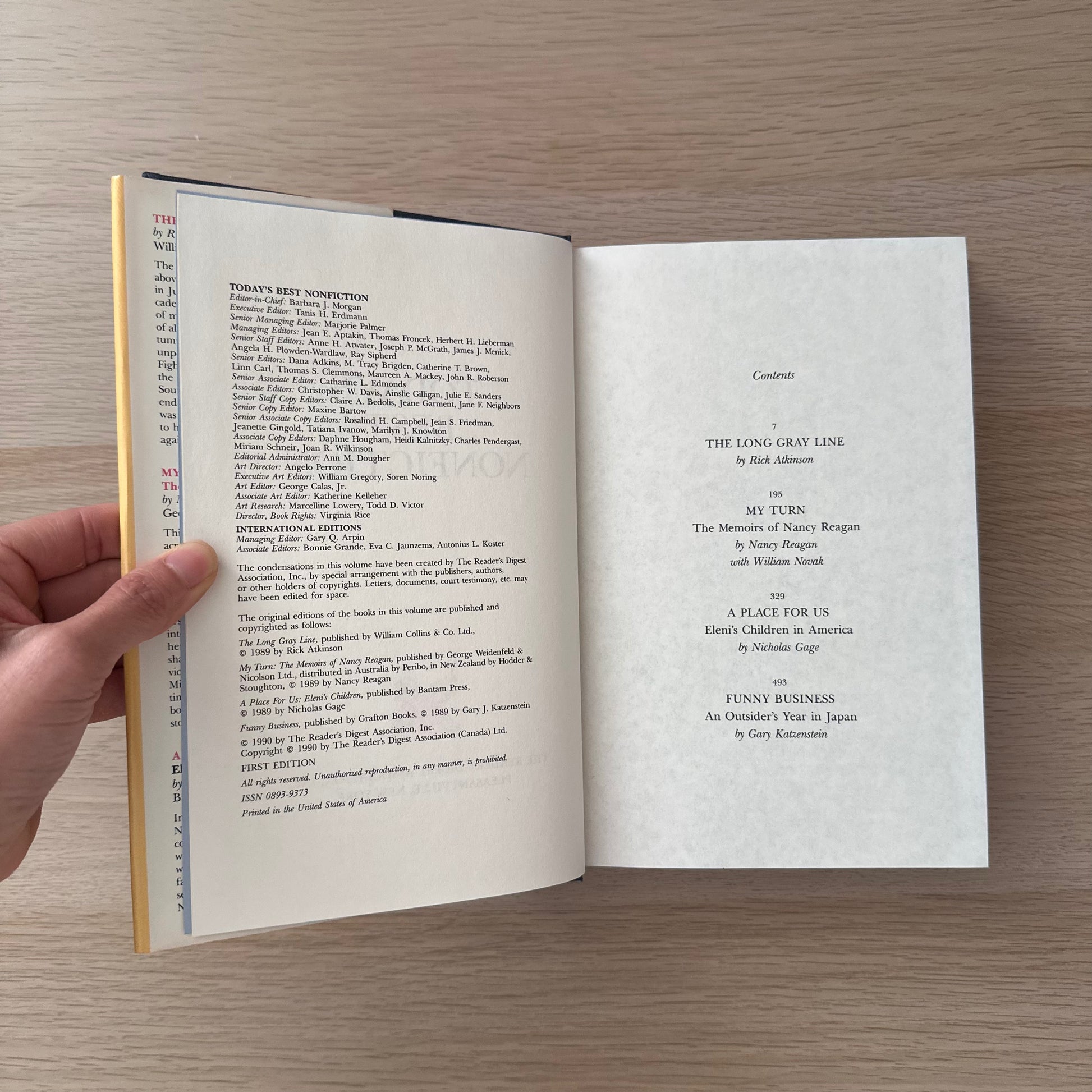 Readers Digest | Today's Best NonFiction | 1990 | Rick Atkinson | Nancy Reagan | Nicholas Gage | Gary Katzenstein