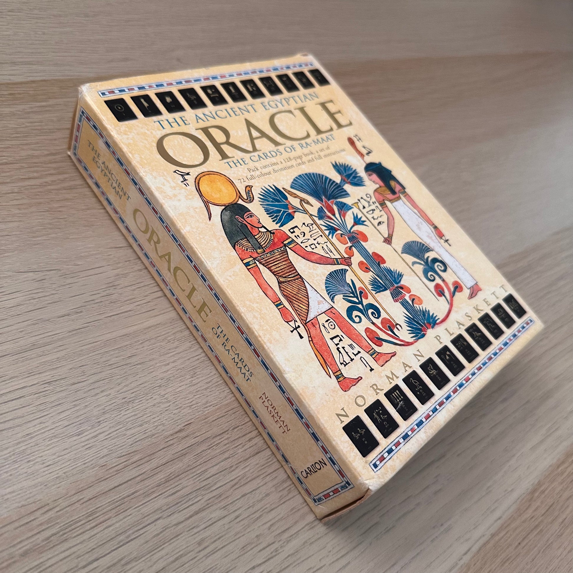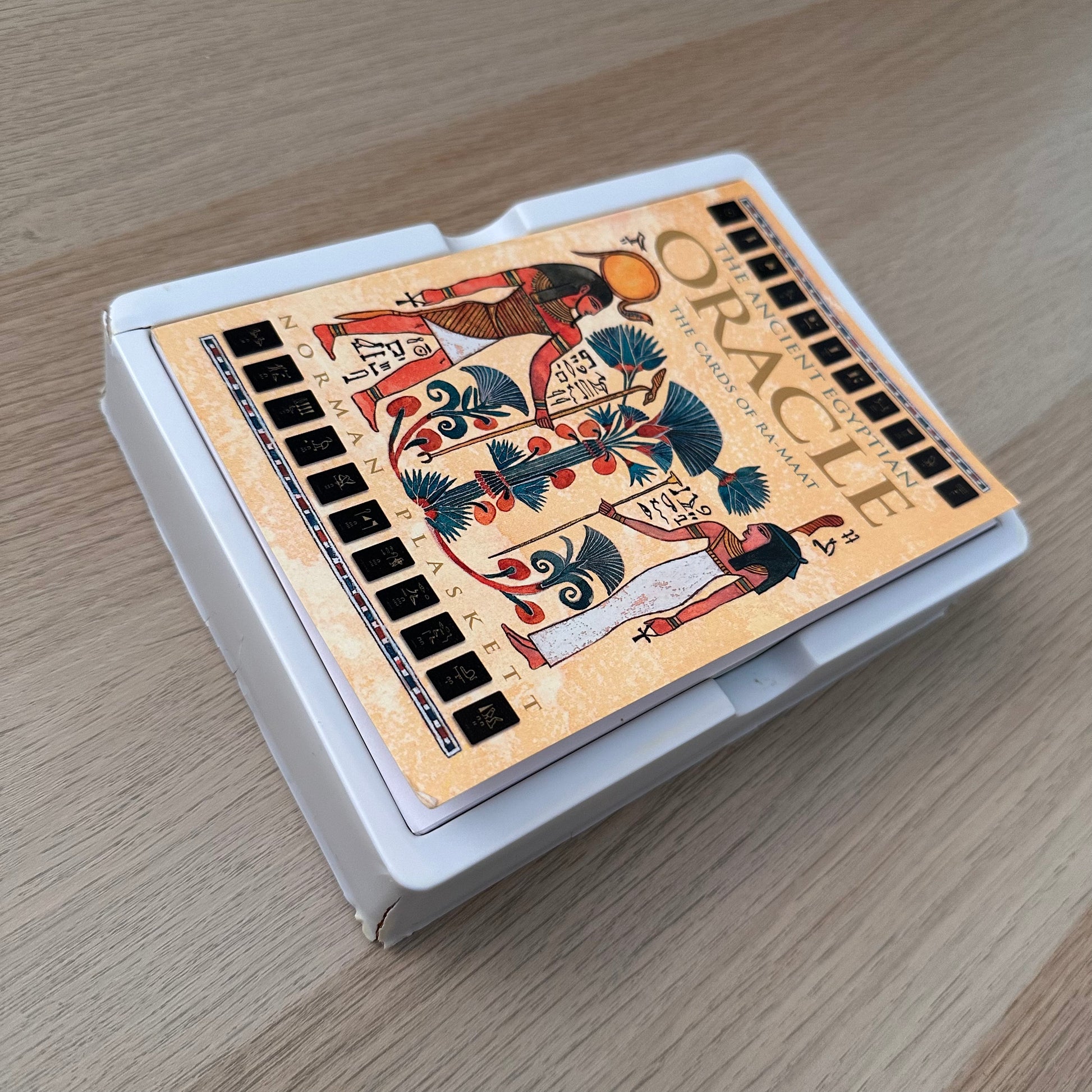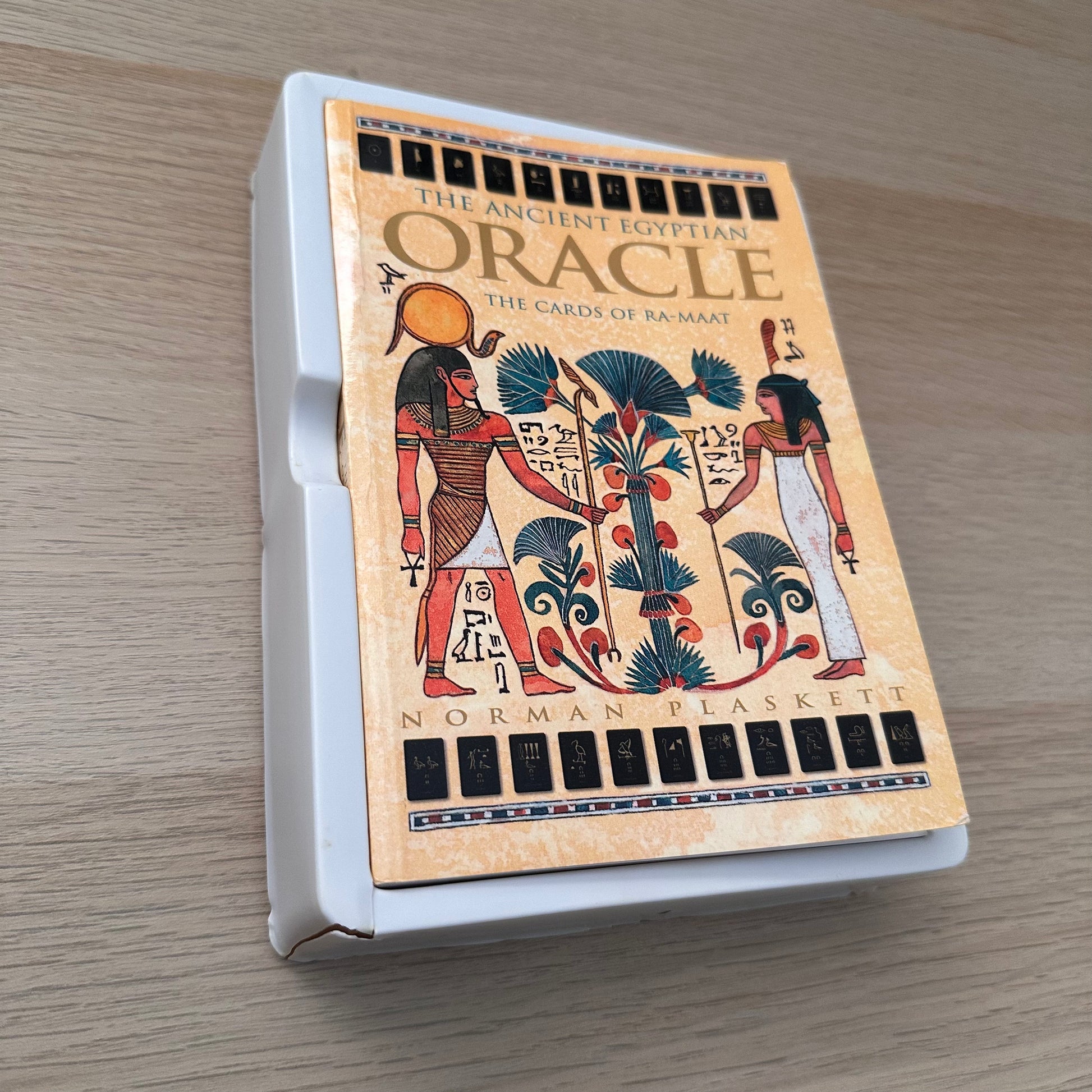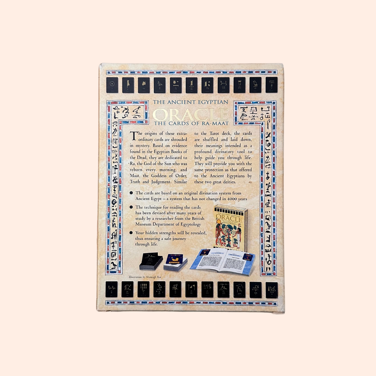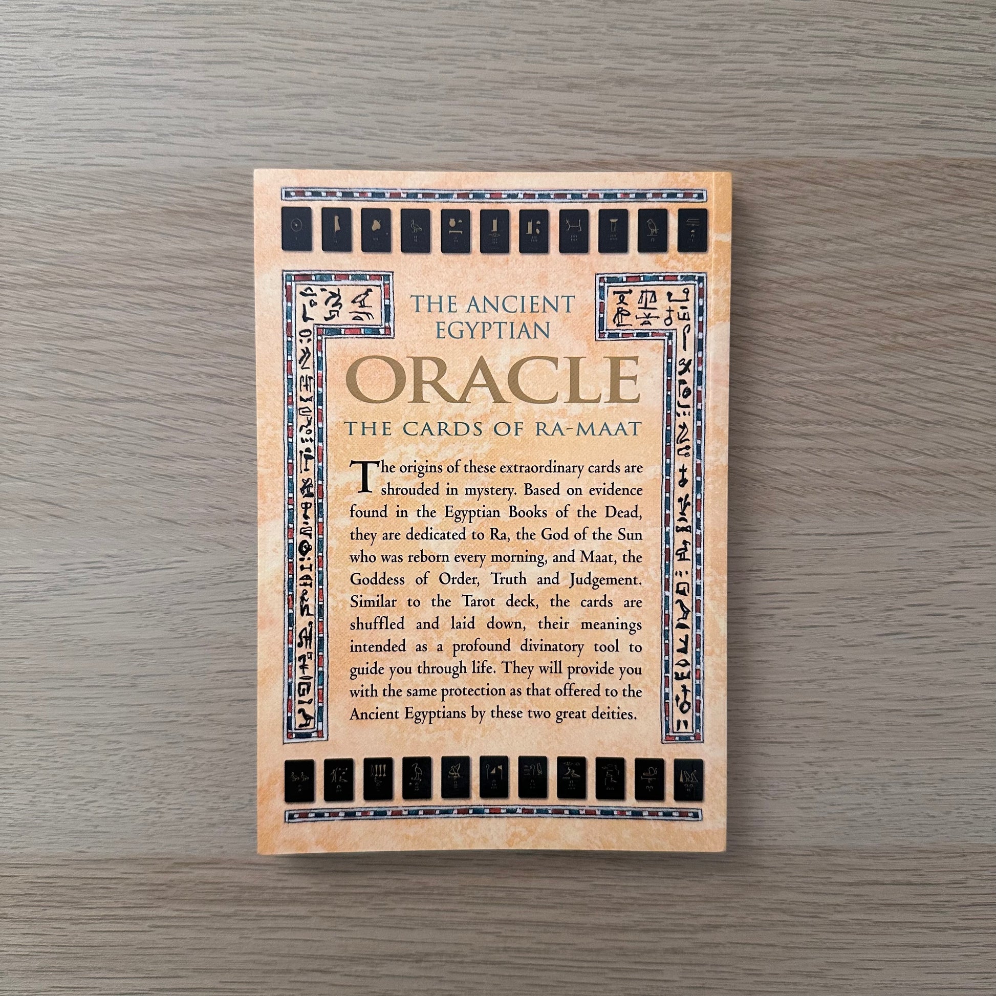 The Ancient Egyptian Oracle allows you to use the wisdom of the ages to penetrate the shadows of the future. The origins of these extraordinary cards are shrouded in mystery. Evidence found in the Egyptian Books of the Dead reveals that the cards are dedicated to Ra, the god of the sun who was reborn every morning, and Maat, the goddess of order, truth and judgement, whom the ancient Egyptians depended on to steer them through the after-world.