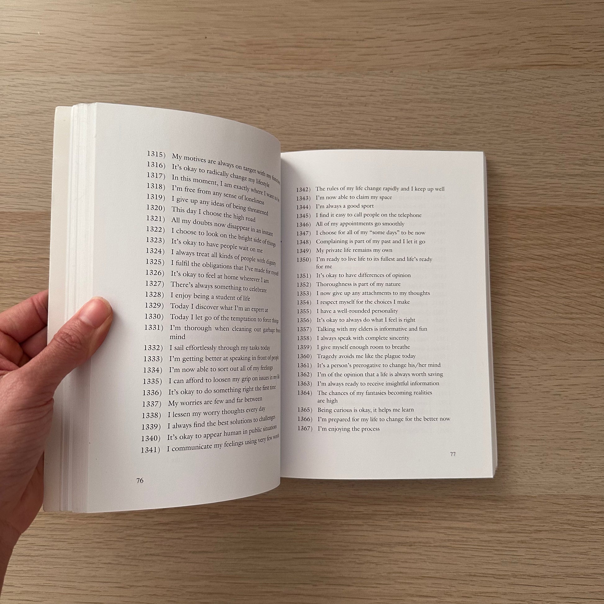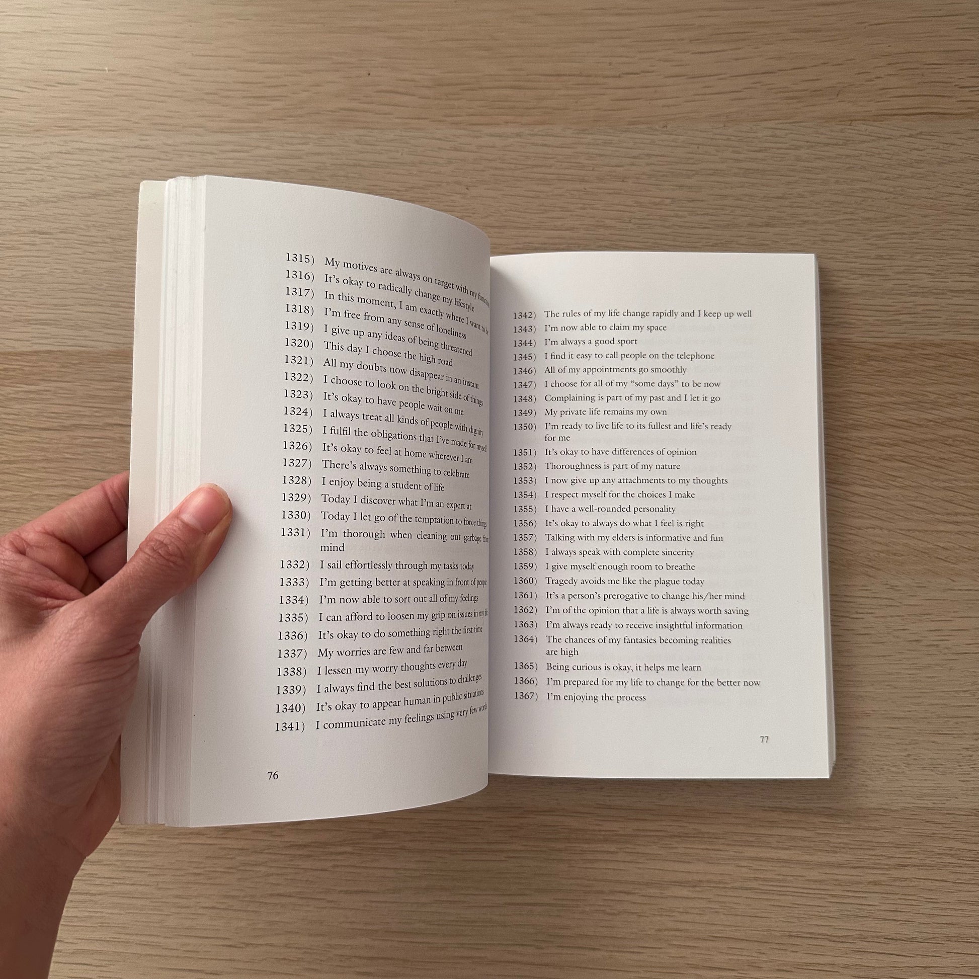 The Book of Affirmations contains over 5,000 categorized, positive self-talk statements. No more feeling powerless over your negative thoughts! No more struggling to make up your own affirmations! The Book of Affirmations has done all the work for you!