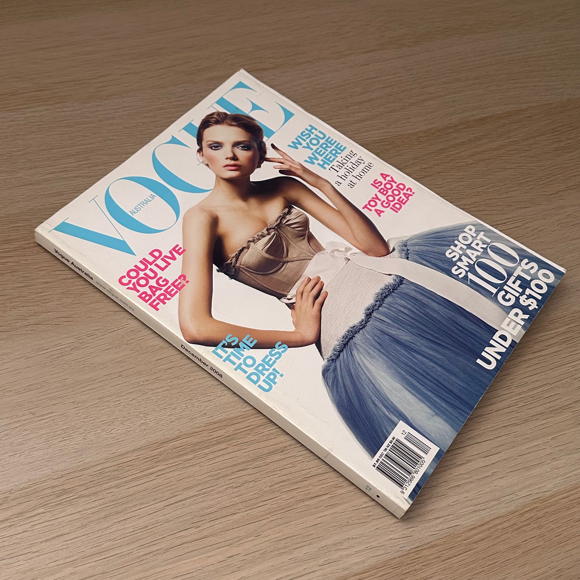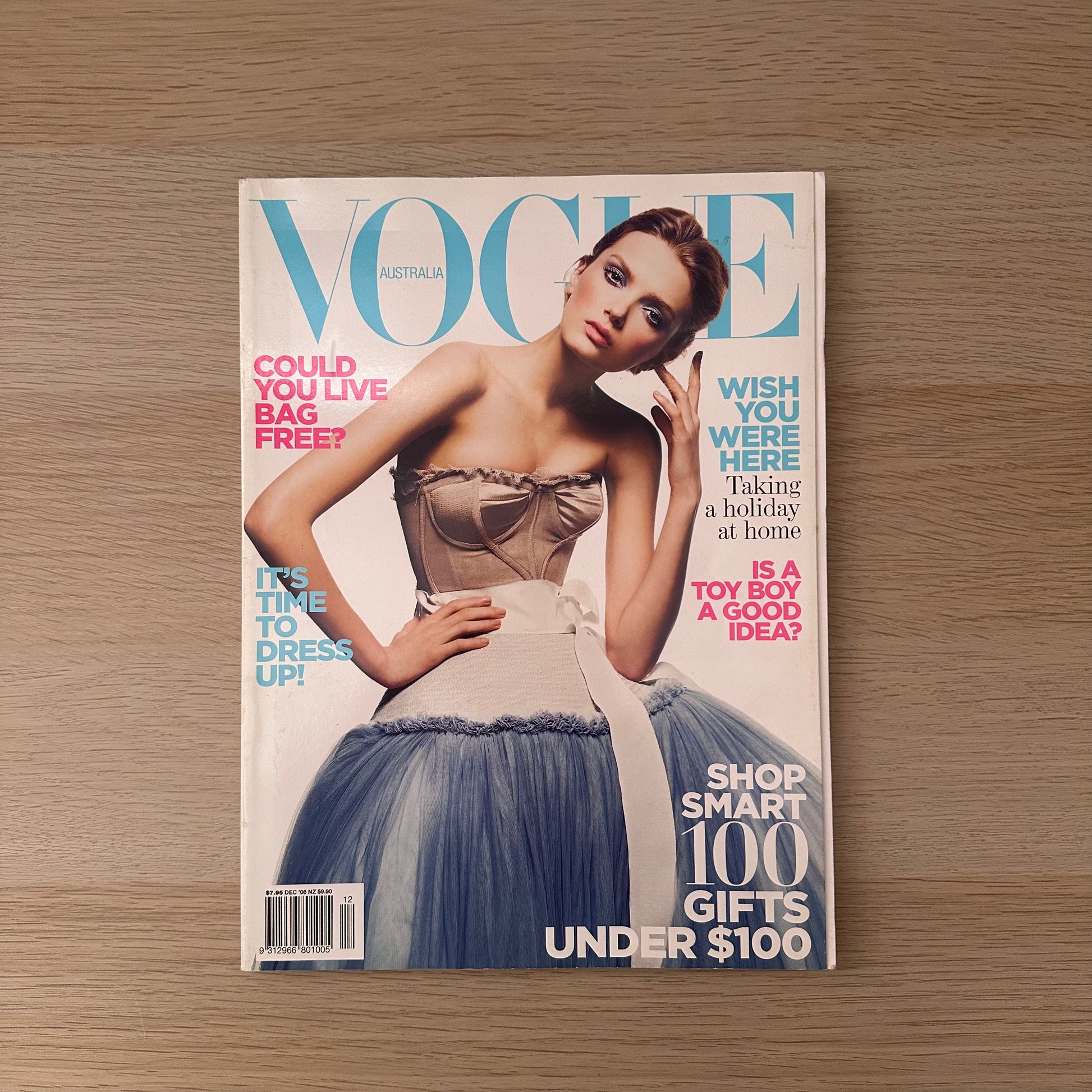Step into the sophisticated world of mid-2000s fashion with this vintage Vogue Australia issue from December 2008. Featuring the stunning Lily Donaldson on the cover, this edition captures the elegance and bold style that defined the era.